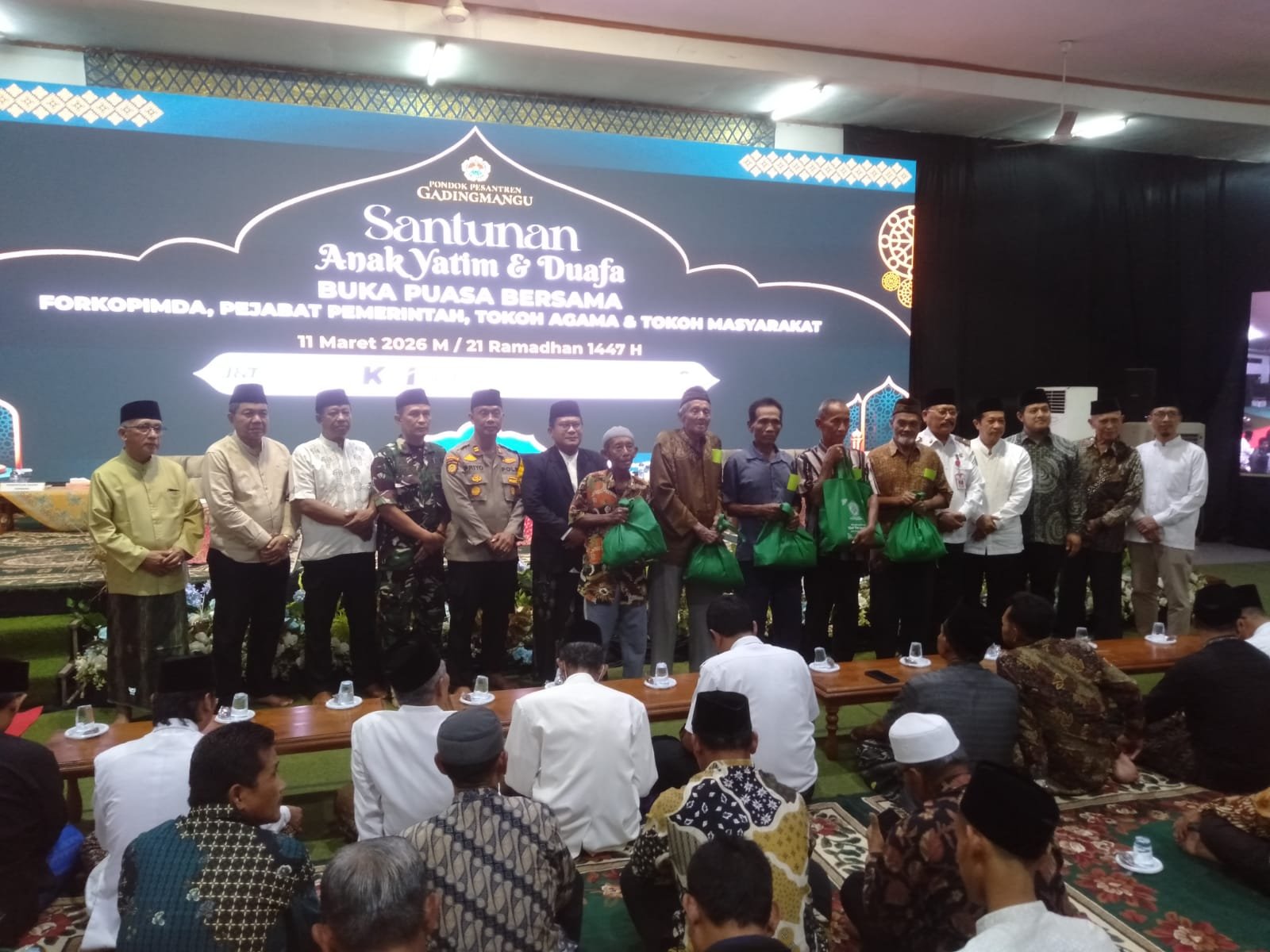 NEWSJATIM.COM,Jombang. Kegiatan santunan anak yatim dan duafa yang dirangkai dengan acara buka bersama berlangsung dengan khidmat di Aula Pondok Pesantren Gadingmangu, Kecamatan Perak, Kabupaten Jombang, pada tanggal 11 maret 2026. Acara ini dihadiri oleh jajaran Forkopimda, penjabat pemerintah daerah, tokoh agama, tokoh masyarakat, serta para santri dan undangan dari berbagai wilayah.